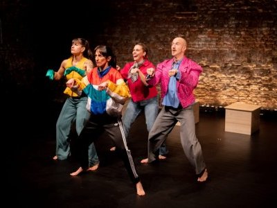 The audience becomes the fifth friend of this group, a complicit witness to an intimacy where the fourth wall constantly wavers.