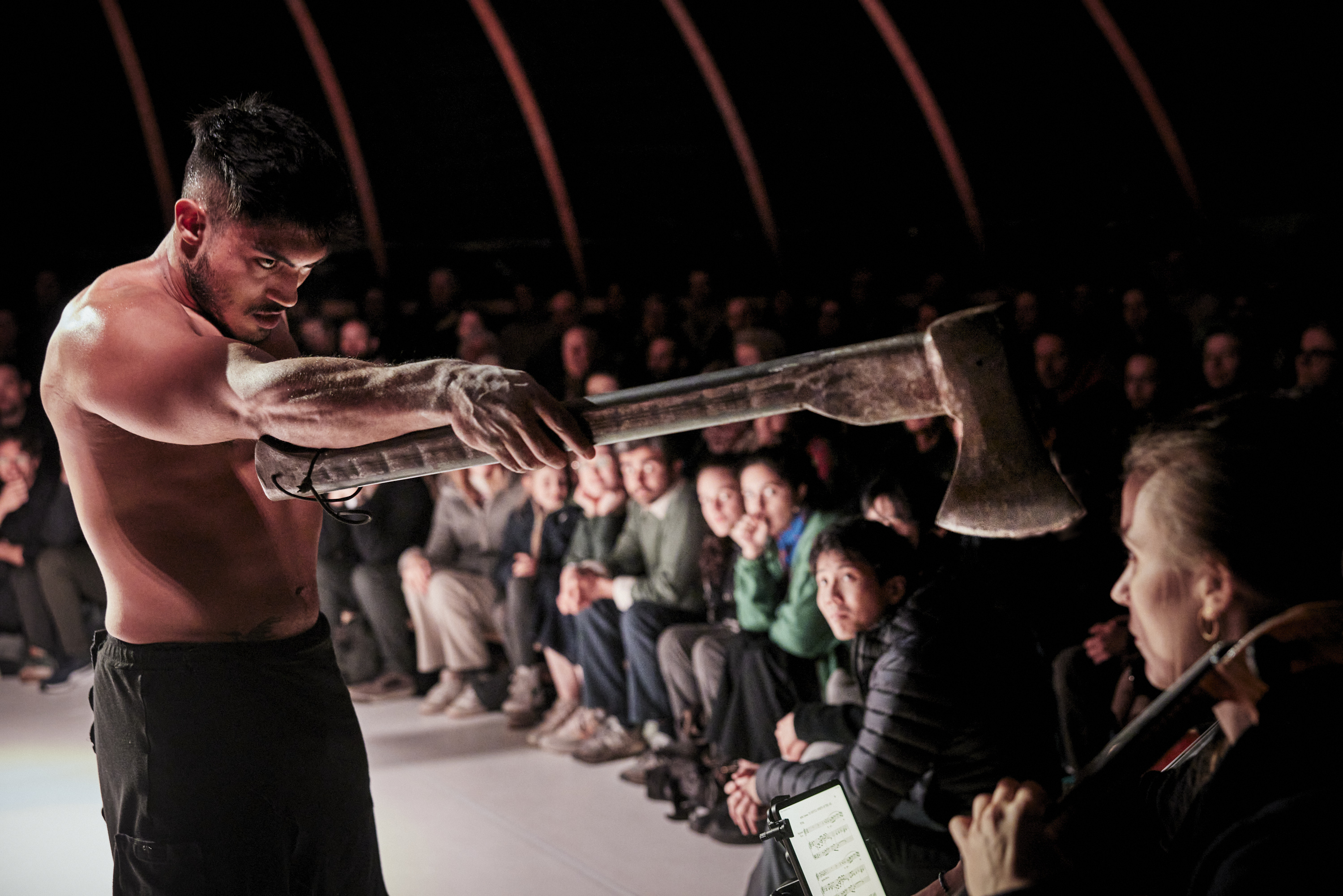 Plus qu’un spectacle, Reclaim est une expérience collective, un rituel auquel on assiste autant qu’on y participe. Sous le chapiteau, les artistes évoluent sur une scène circulaire, entourés par le public tout proche.