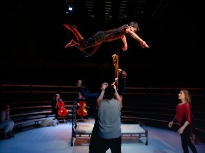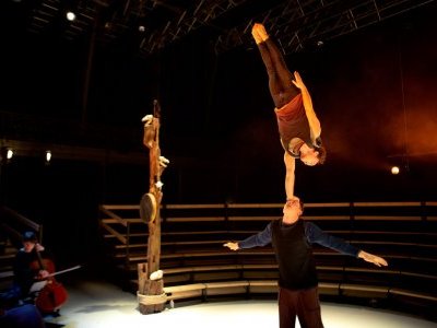 Reclaim is an imaginary ritual during which an opera singer, two cellists, and five acrobatic performers invite us to rediscover a more just relationship with the world.