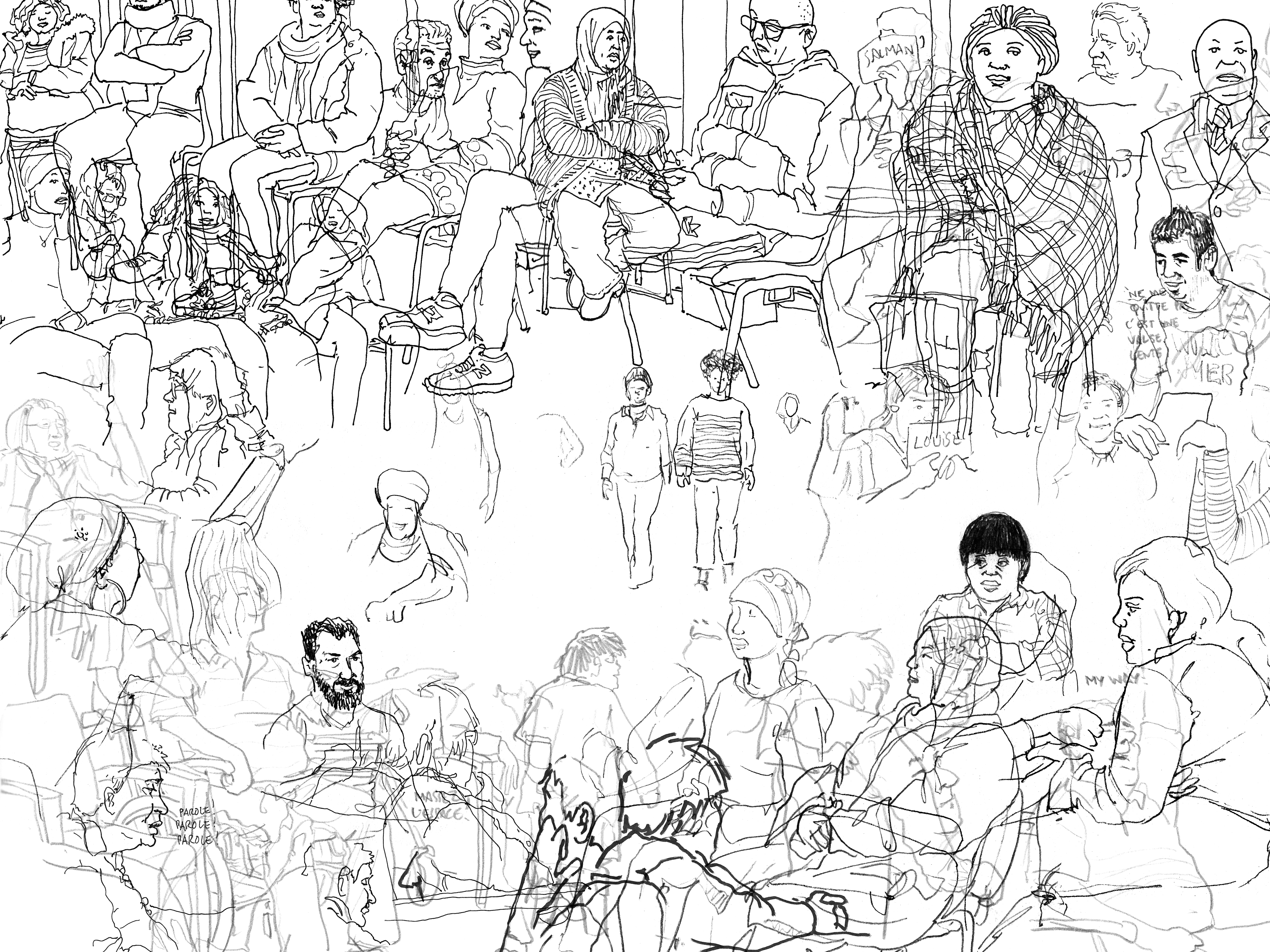 On stage, Mauro and Eric develop their observations and reflections through speech, body, dance, drawing, and video. They are joined by dancer Tijen Lawton, video artist Stéphane Broc, and a group of non-professionals.