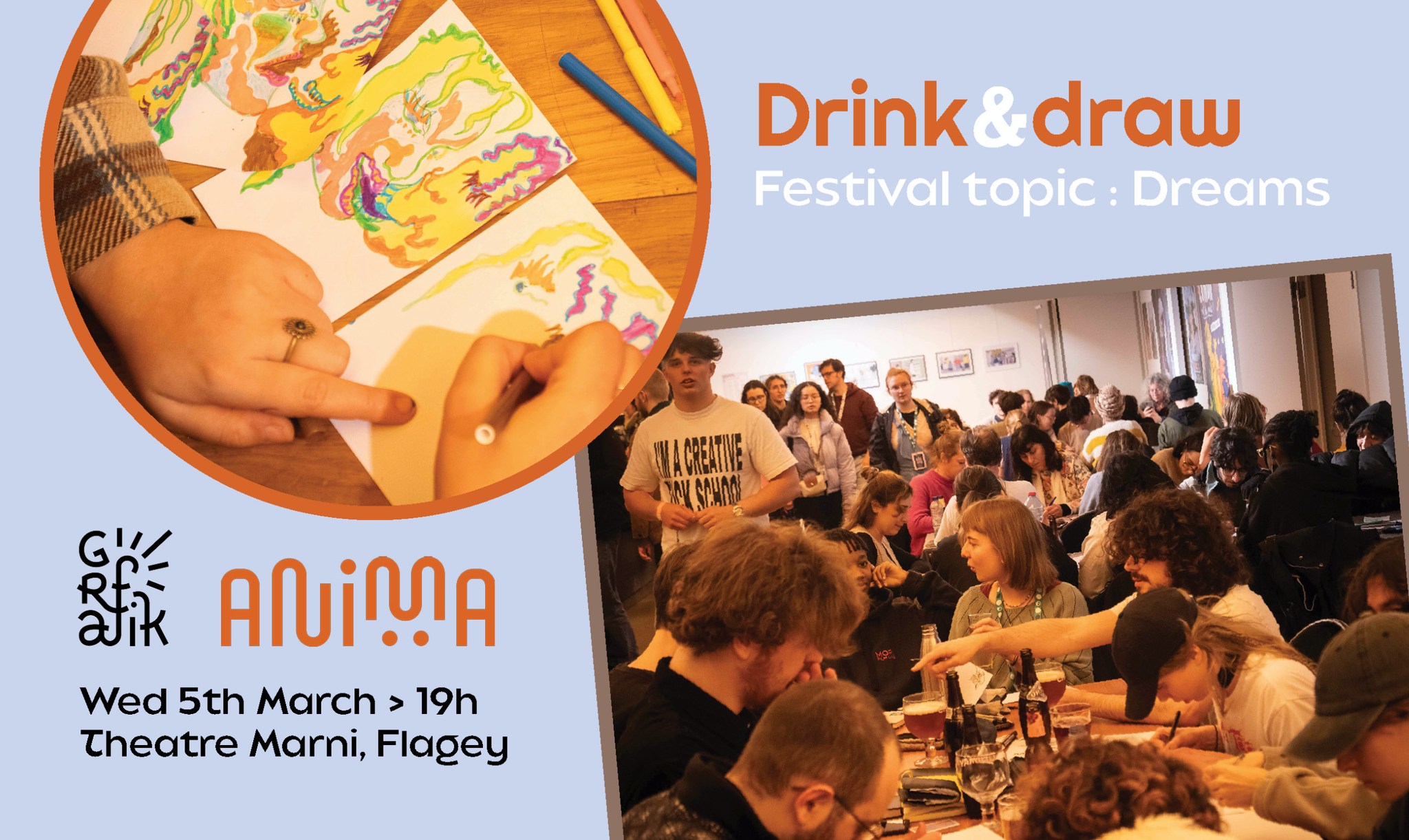 Le concept est simple : dessiner ensemble autour d’un verre. Pour les dilettantes, enthousiastes ou les novices avides de découvertes, le Drink & Draw célèbre la diversité artistique dans une ambiance décontractée. Pour cette édition spéciale, Grafik vous guide afin de réaliser de courtes animations analogiques transformées en GIF et à partager avec votre entourage.