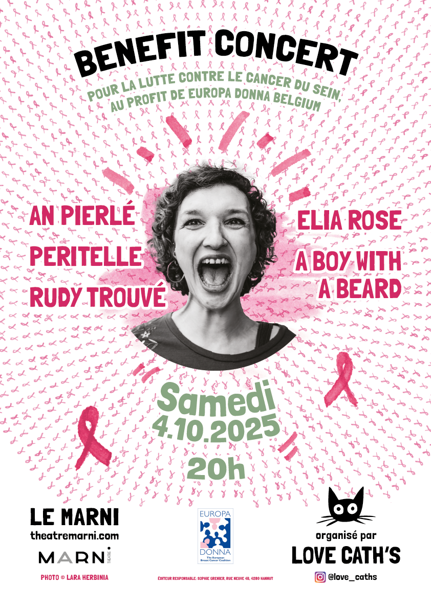 Dit eerbetoonconcert, gesteund door Love Cath’s, maakt deel uit van een strijd die zowel intiem als collectief is : om de herinnering aan Catherine Grenier levend te houden, maar ook om vrouwen te steunen die vechten tegen borstkanker - met kracht, waardigheid en hoop.