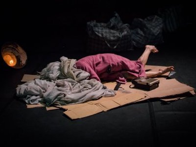 EN Etna, an ageless woman, drifting and lonely, squats at the theatre like a spectre, haunted by the rubble of her life. She dances to conjure a spell of bad luck, to retain an element of life force. She dances because the desire to feel, live, and love still resides within her. She roams and wanders the contours of her memory, revealing the inner labyrinths of a life and body marked by loss.