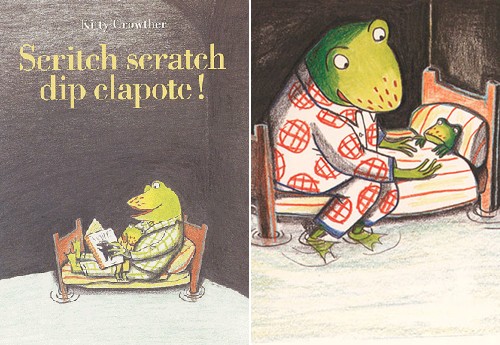 Comme chaque soir, la nuit se couche sur l’étang. Et, comme chaque soir, Jérôme a peur (…) Tout seul dans son lit, tout seul dans son cœur. Je crois que j’ai entendu un bruit… qui fait « scritch scratch dip clapote » sous mon lit ?