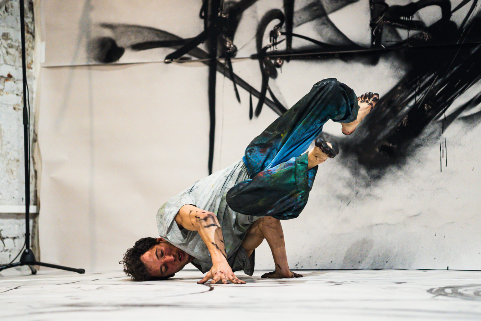Entre danse et performance physique, art plastique et chorégraphie où Jules s’abandonne totalement à un lâcher-prise nécessaire à l’inspiration et à la créativité.
