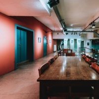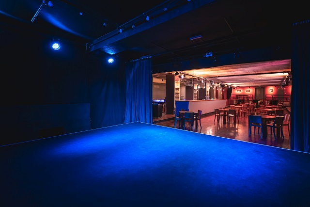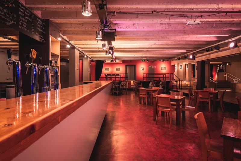 Le bar se situe au sous-sol, accessible par les escaliers.