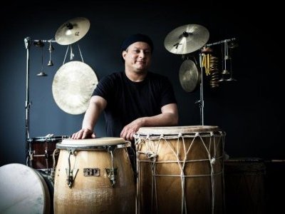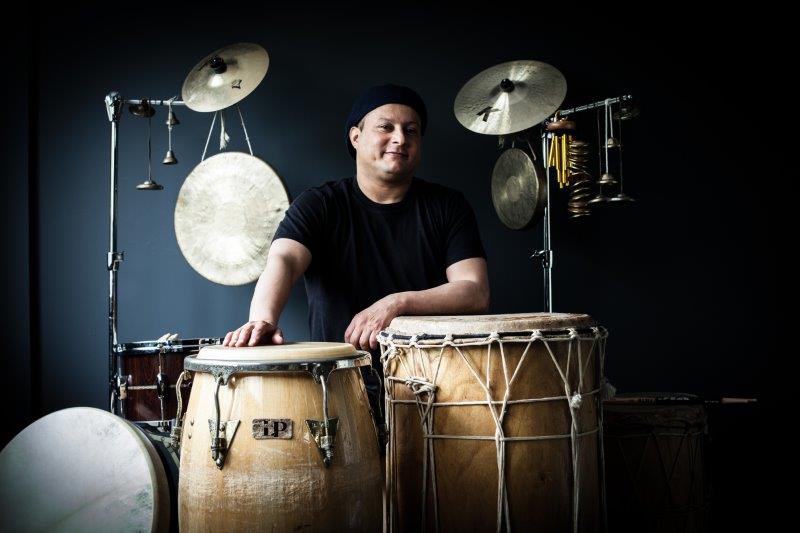 Michel, quant à lui, crée un set de percussions hybrides mixant les éléments de batterie et de percussions. Ainsi il peut à sa guise créer des ambiances, groover, accompagner, improviser et soutenir la musique comme il aime si bien le faire.