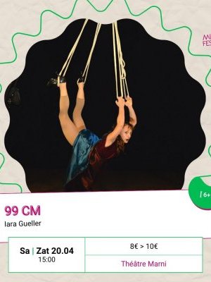 Au Marni, trois temps forts : "99 cm" de Iara Gueller vous plongera dans un univers où les objets du quotidien se métamorphoseront en éléments d’un cirque intime, révélant les coulisses de la vie d’une artiste. Le "Breakomaton" des Daltoniens fait de vous le personnage d’un clip. Enfin, "Ma part d’ombre" du chorégraphe Sofiane Chalal explore la perception du corps, à la fois allié et ennemi, selon qu’il est perçu par nous-même ou