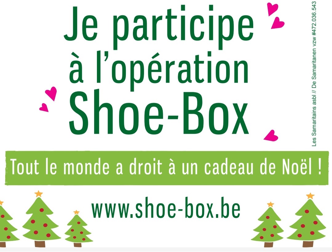 Il nous tient à coeur de partager une action solidaire qu’on vous invite à concrétiser ensemble : "parce que tout le monde a droit à un cadeau de Noël", l’asbl les Samaritains distribue des boîtes à chaussures remplies de douceurs aux sans abris et démunis de Belgique.