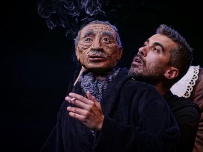 Génie du mime et du jeu corporel, Othmane Moumen s’efface cette fois derrière la frêle silhouette de son père, ce qui ne l’empêche pas de lui insuffler son énergie vitale. Outre une marionnette à taille réelle qui vous bluffe de réalisme, le créateur a aussi conçu une minuscule marionnette articulée, métaphore de ce père aujourd’hui diminué par la maladie. Catherine Makereel, Le Soir
